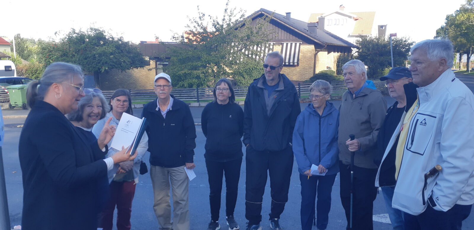 Ett hundratal personer deltog i tipspromenaden på Söder i Huskvarna i skön septembersol den 13/9. Alf Henrikson-sällskapet fanns på plats vid författarens barndomshem där Johanna Helgesson numera bor (på fotot tillsammans med sällskapets Affi Karlman som på den första bilden läser dagsverser för en skara intresserade åhörare, längst till höger vår ordförande Hans Josefsson som tog emot spelande hawaiiansk flöjt!). Arrangemanget – bakom vilket en lång rad föreningar och företag stod – var en del av den riksomfattande satsningen ”Vandringens dag”.